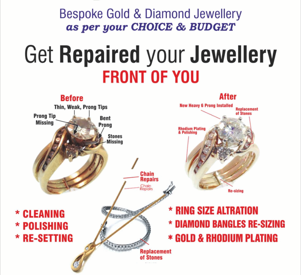 Every repair is handled with utmost care and precision, using advanced techniques and quality materials to ensure the longevity of your jewellery. We pride ourselves on providing quick and reliable service without compromising on quality.